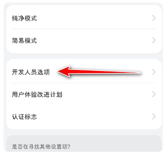 5、进入后点击"开发人员选项"。