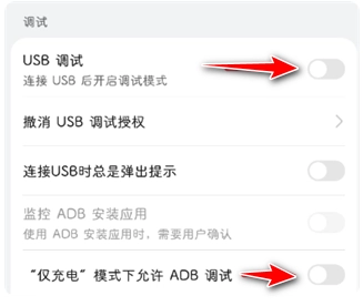 6、在调试板块打开"USB调试"的开关。