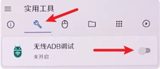 11、如图所示,点击工具图标,打开“无线ADB调试”的开关。