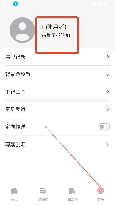 进入首页,点击更多,点击登录注册