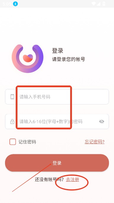 输入账号密码,点击登录,没有账号,点击下方去注册