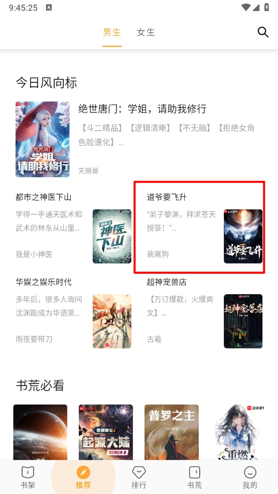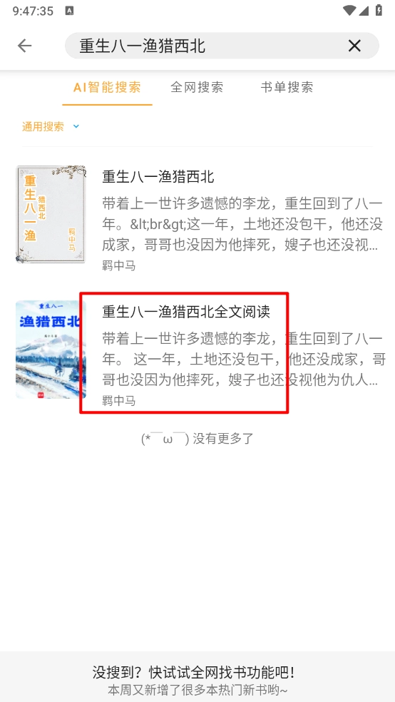 1用户完成软件安装后进入主界面,可通过滑动浏览筛选或直接搜索的方式找到自己感兴趣的小说。
