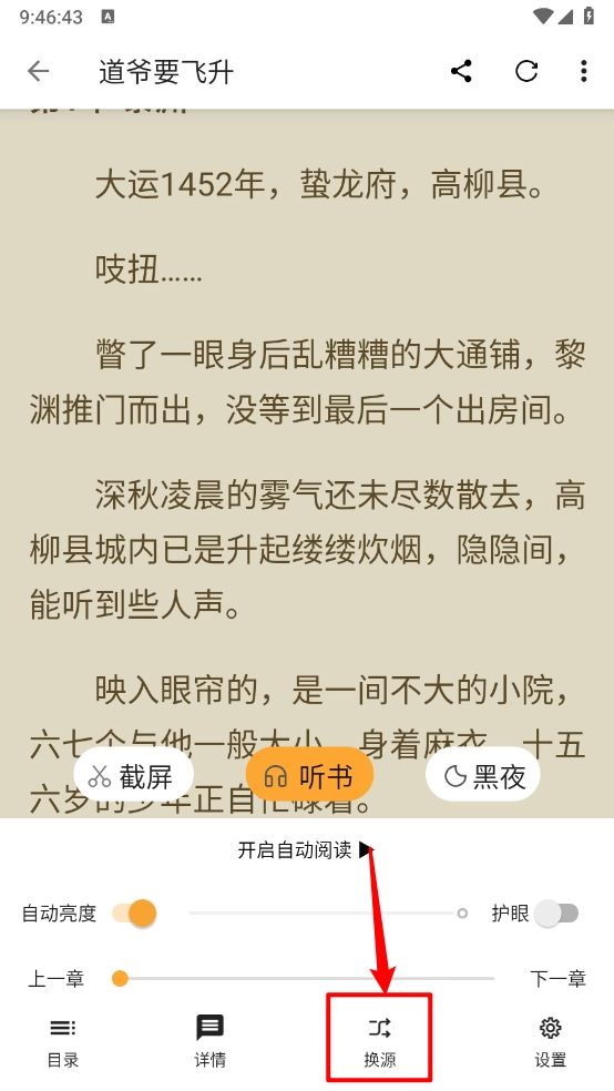 2、进入小说详情页,点击"换源"。