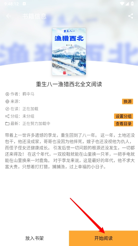 2、在小说详情页,点击"开始阅读"进入。