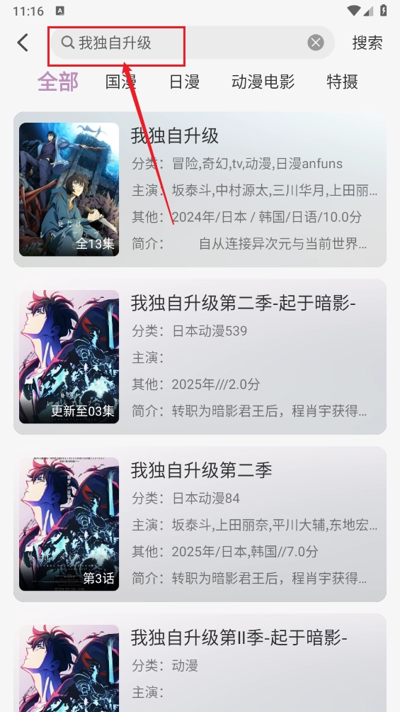 3另外,也能点击顶部的搜索栏,输入动漫名称来查找自己感兴趣的动漫作品。