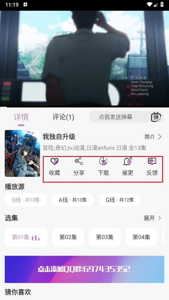 4、进入详情页面后,就能开始播放内容了,同时还支持收藏、分享等功能。