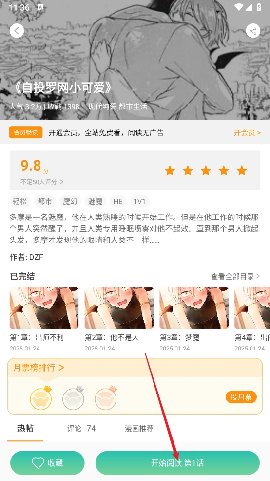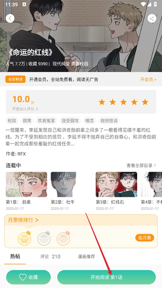 4、然后进入漫画详情页,点击"开启阅读"即可。