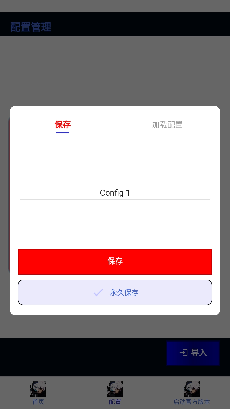 1、创建不同的配置,保存参数内容,方便用户使用