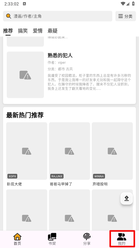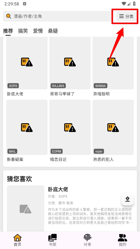 3、如图,根据分类选择喜欢的漫画板块。