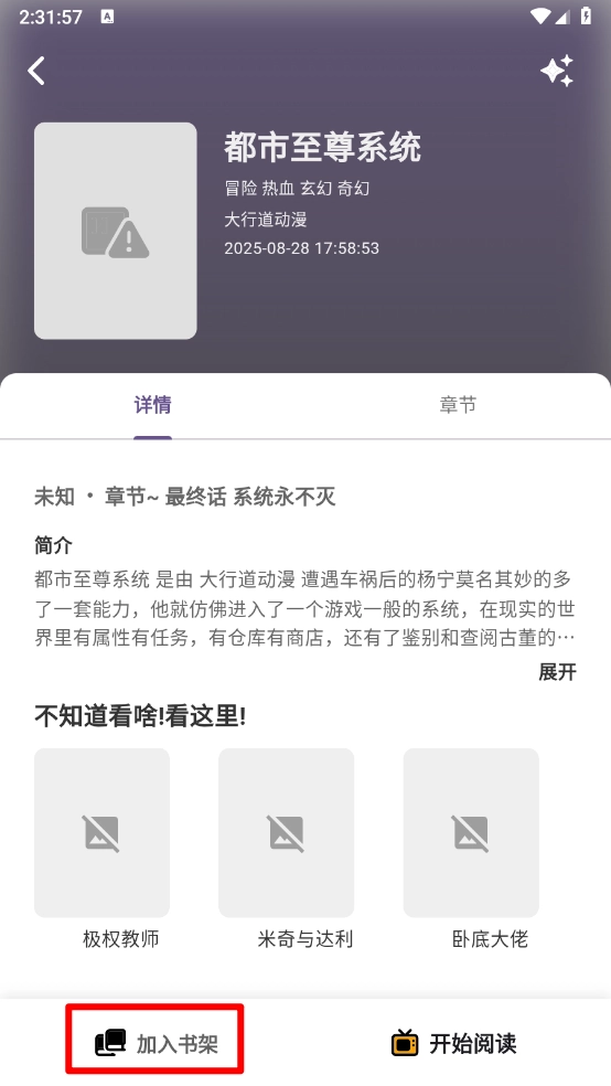 5、在漫画详情页点击左下角"加入书架"。