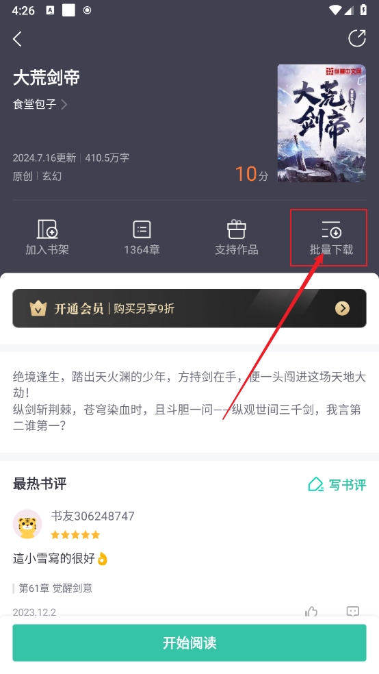2在界面上找到对应小说的快捷入口,通过单次操作即可跳转至该小说的详情界面,随后在界面中找到并点击“批量”相关功能按钮。