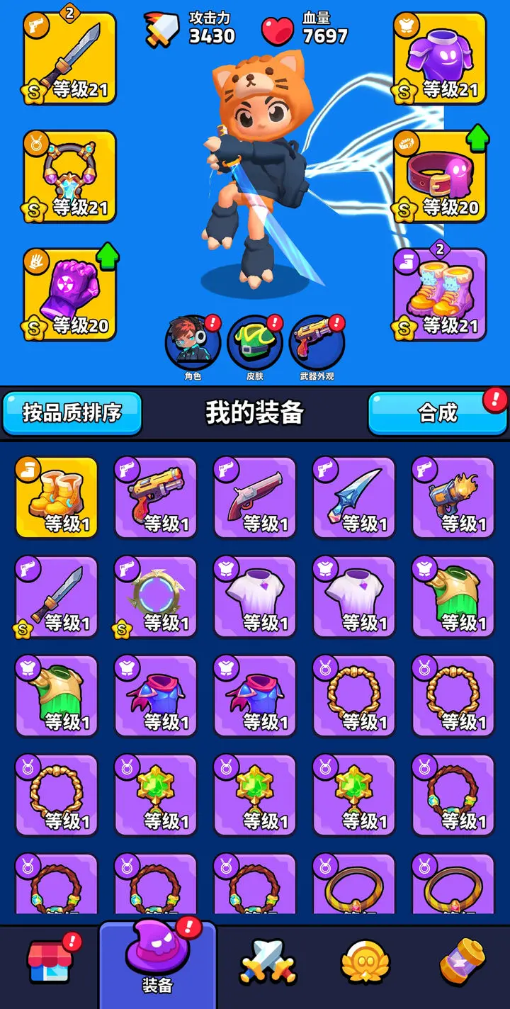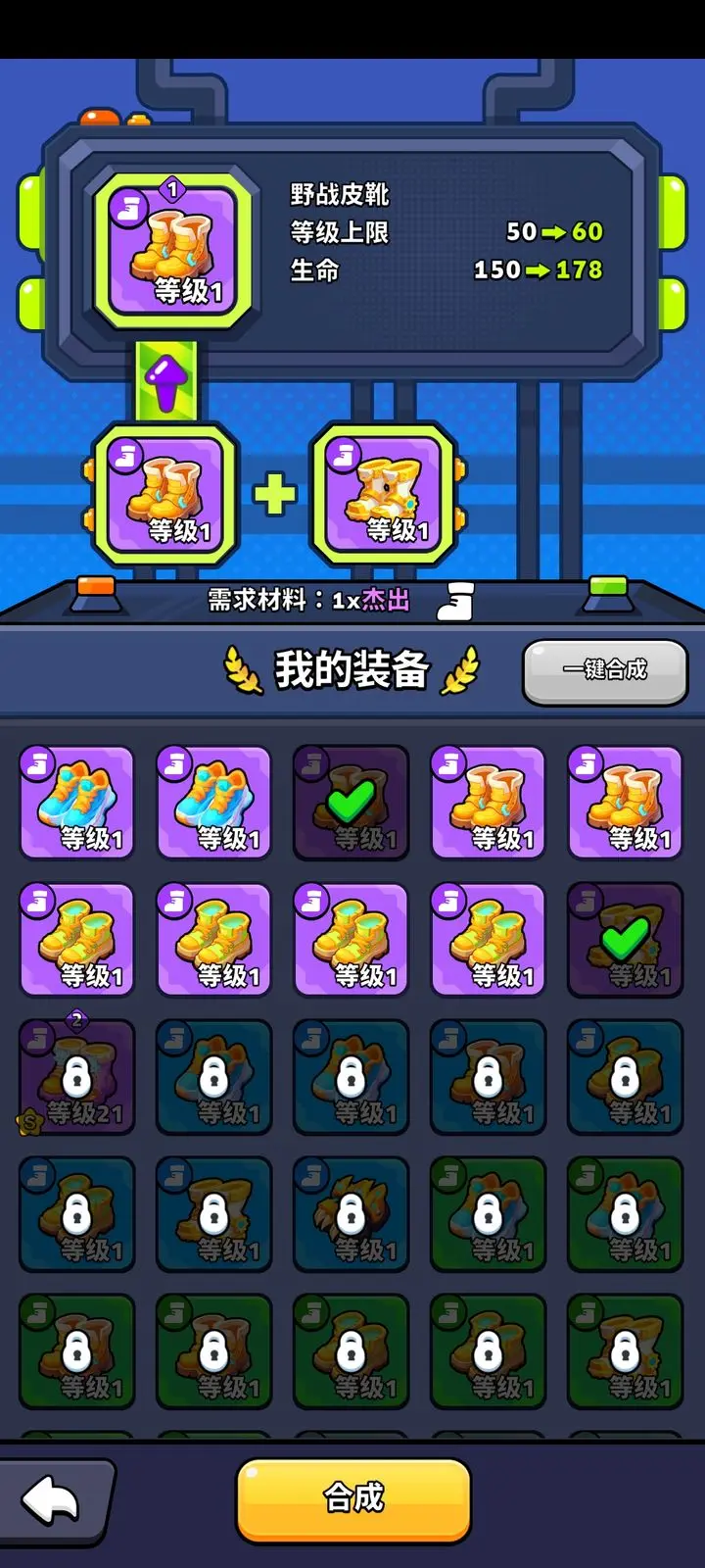 除装备带来的属性加成外,还可以提高自身等级,在进化中提升基本属性,同时通关绝境模式获得天赋基因,去进化中获得开局强力额外技能,如:先人一步、反悔了、耍赖等等进化得来的技能。