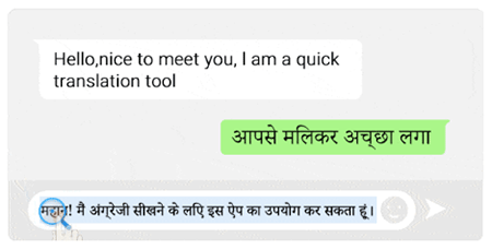 2)输入您的内容并将“翻译球”拖动到输入框,然后就可以使用外语发送文本。