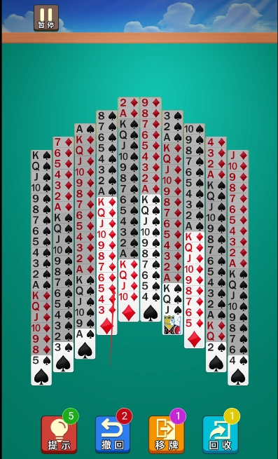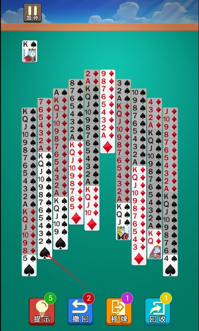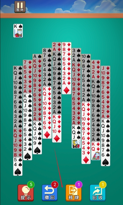 撤销道具:在操作失误,如错误移动纸牌导致牌局陷入不利局面时,撤销道具能发挥作用。点击撤销按钮,可将最近一次的操作撤回,恢复到操作前的牌局状态,帮助玩家纠正错误,重新规划策略,不过同样存在使用次数限制。