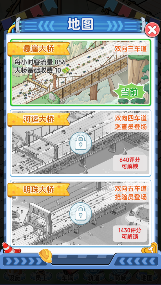3、当达到相应的评分时,玩家可以解锁更多的桥梁。