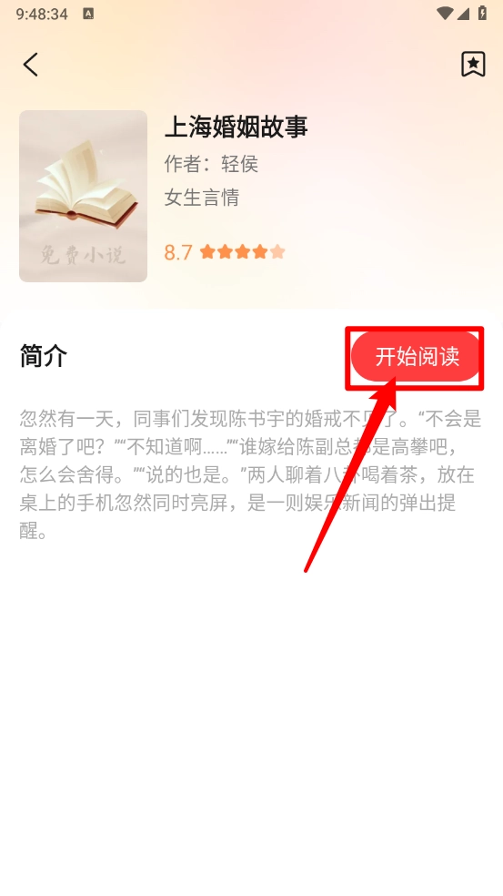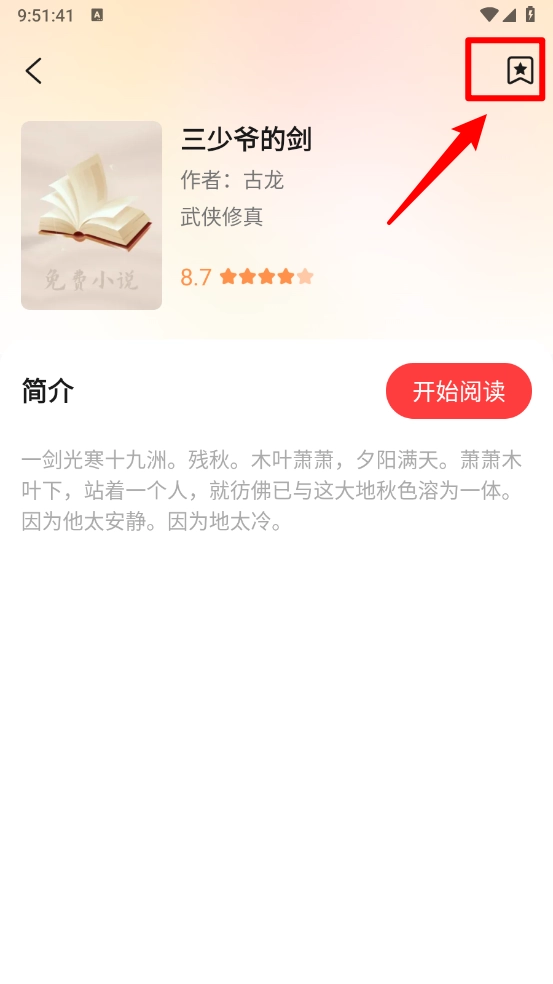 2、进入小说详情页,点击右上角图标即可加入书架。