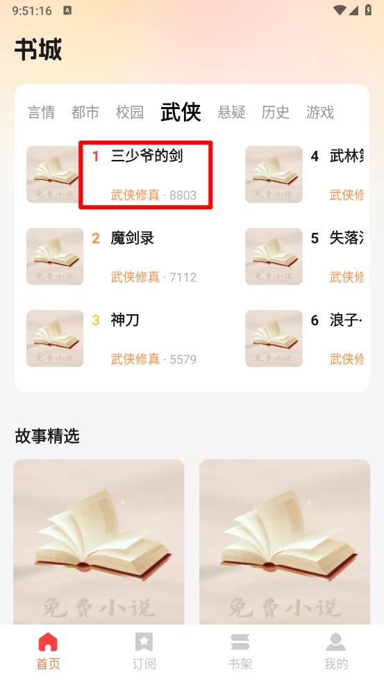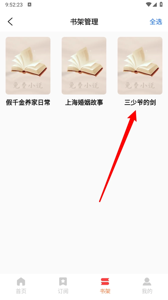 3最后回到主页面,找到书架区域并点击进入,就能看到之前添加的所有小说了。