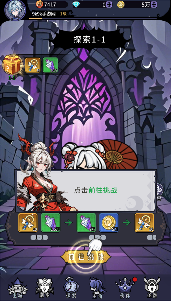 4、点击探索,选择关卡进行挑战。