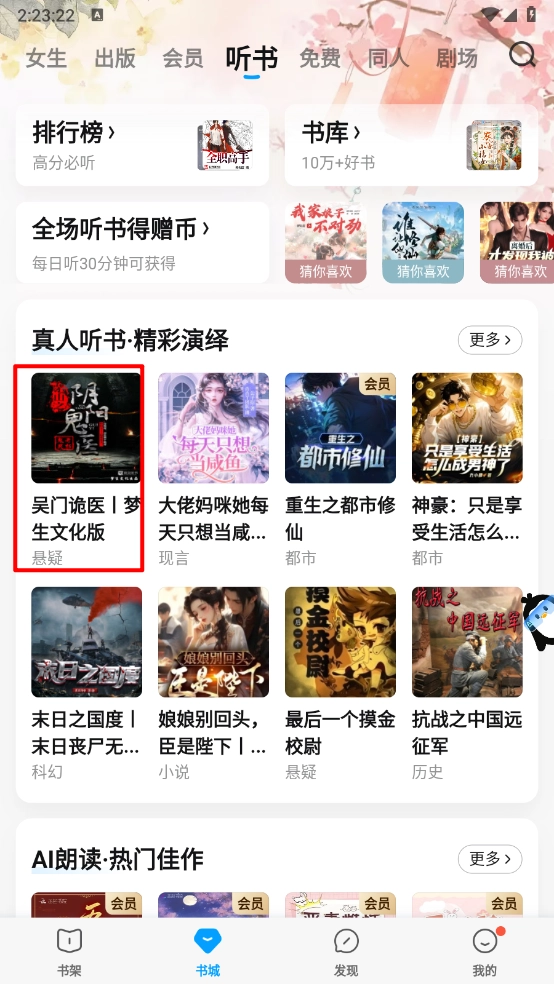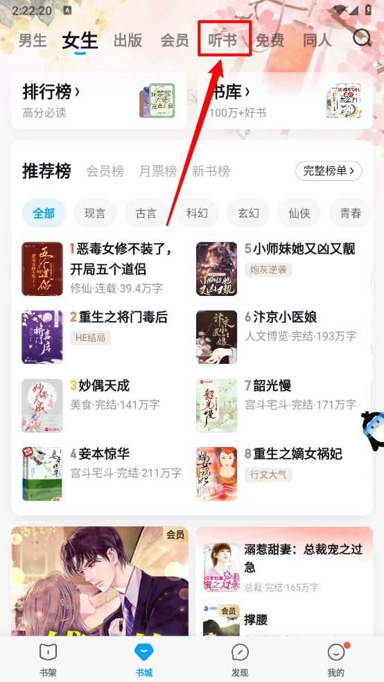 1、打开软件,在书城中点击进入"听书"板块。