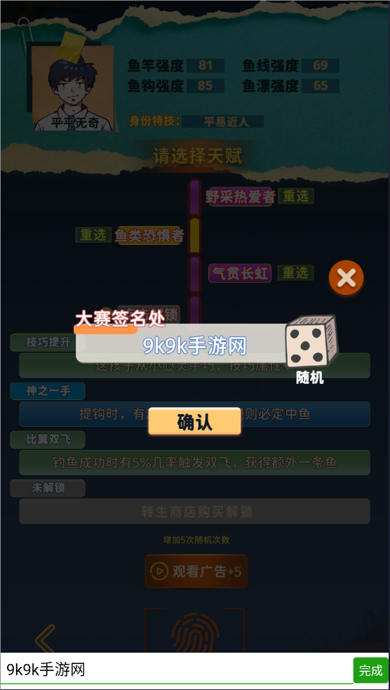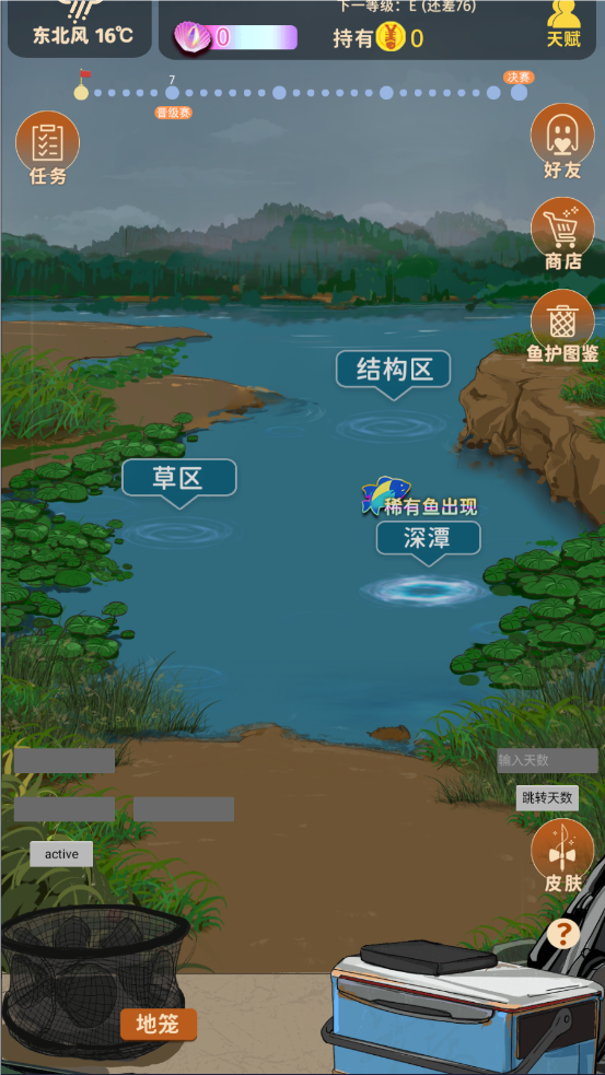 这是一款以垂钓为主题的冒险类轻游戏,玩家能自定义角色的职业与性别,搭配随机生成的天赋特性,并运用商店中的各类道具,向着垂钓赛事的最高荣誉发起冲击。游戏提供了多元的游玩策略:既可以通过不断积累实践经验来全面强化各项技能,也能寻求经验丰富的垂钓前辈的帮助,共同应对形形色色的鱼类挑战,开启一段充满奇趣与巧思的垂钓冒险。