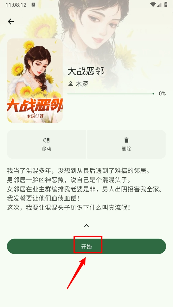 4、一键打开进入小说详情页,点击"开始"。