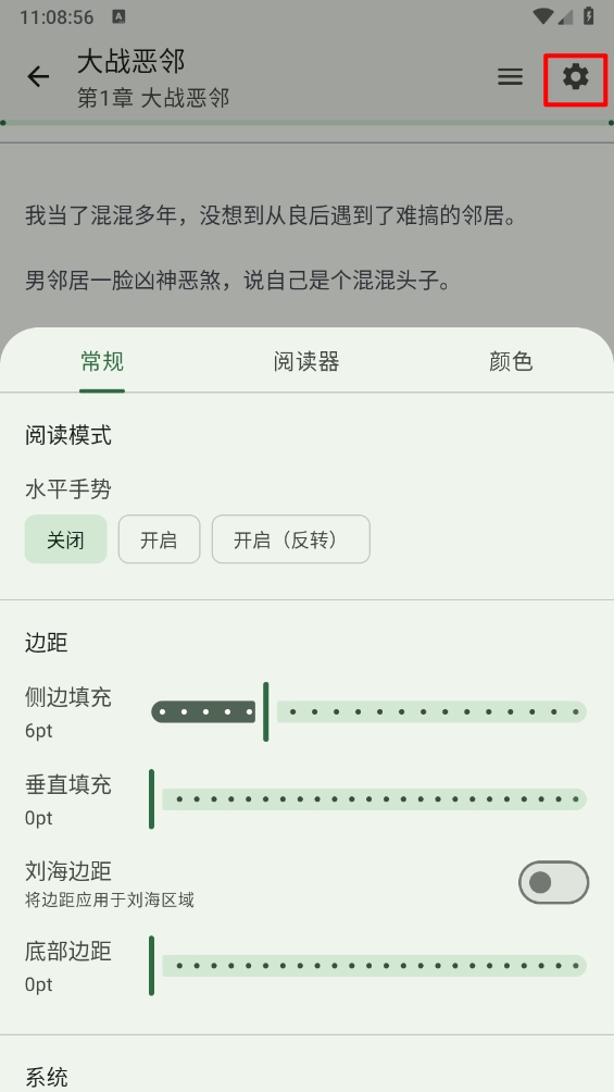 在相应位置调出顶部与底部栏,接着点击右上角的齿轮图标,这样就能看到所有阅读器设置。另一种方法是进入设置界面,选择“阅读器”类别来调整常规设置,或者选择“外观”类别来设置颜色相关选项。