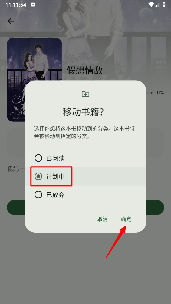 3、然后选择"计划中",点击"确定"即可。