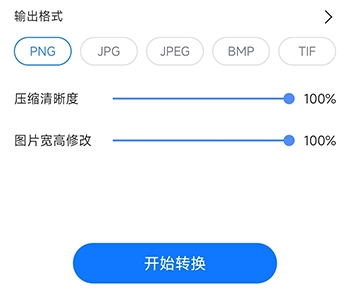3、最后选择需要的输出格式,调整好清晰度和图片宽度,点击“开始转换”按钮就可以了。
