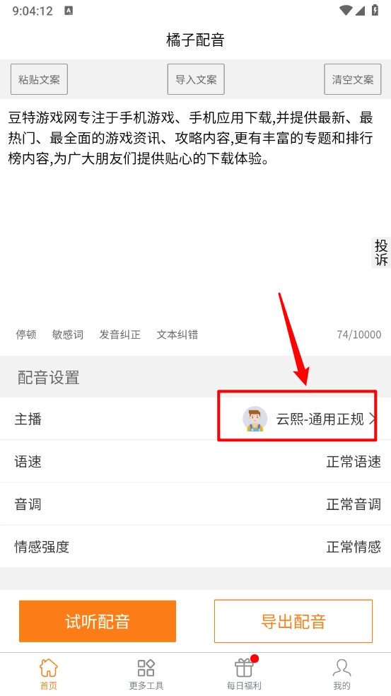6、完成后在主页可以进行试听、导出配音即可。