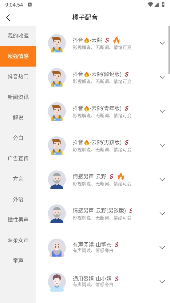3、然后根据需求选择喜欢的主播声音。
