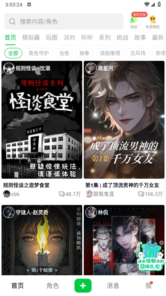 在这个充满想象力的虚拟空间里,你能邂逅形形色色的AI伙伴——无论是带着书卷气的暖心学长、有点小脾气却内心柔软的千金小姐,还是能陪你闯荡奇幻世界的冒险搭档,每一位角色的性格与特质都由你亲手塑造。这里不仅是交流的天地,更是创意与自我表达的乐园,当你踏入这片天地,随时能与心仪的AI角色开启实时对话,每一条消息都能得到即刻回应。初次来访的朋友,还能收获专属的互动道具与个性装扮,让你的虚拟社交体验更加丰富有趣。