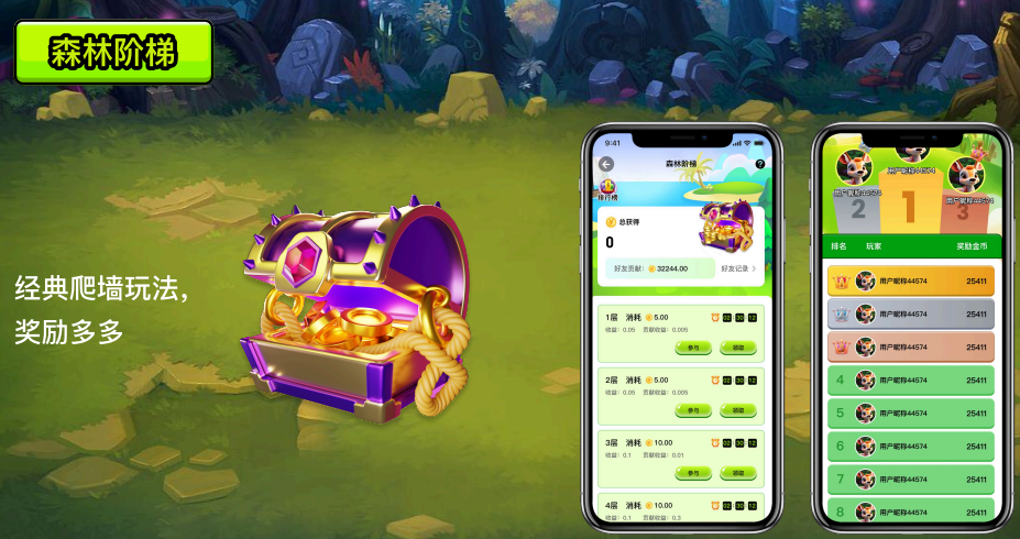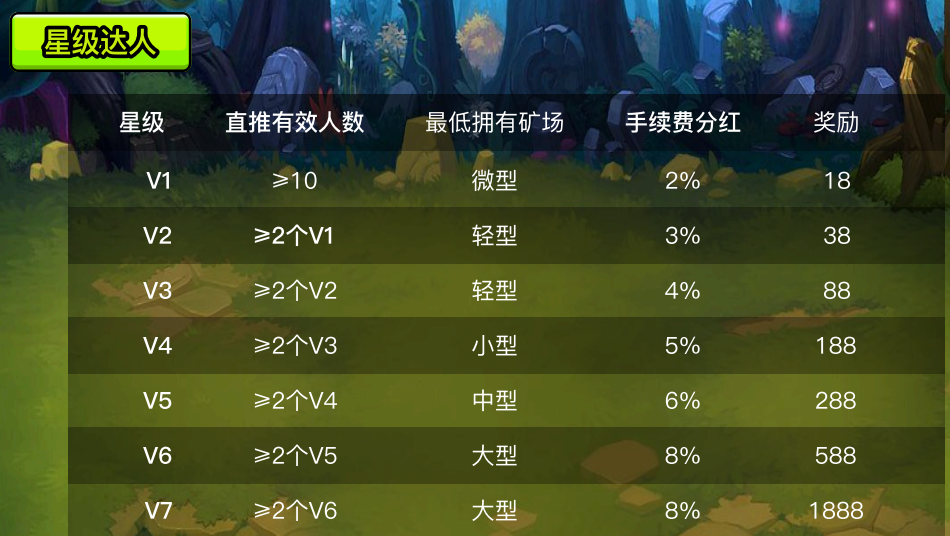 爬墙和开矿收益:直推10%;森林大逃杀收益:直推投入2%
