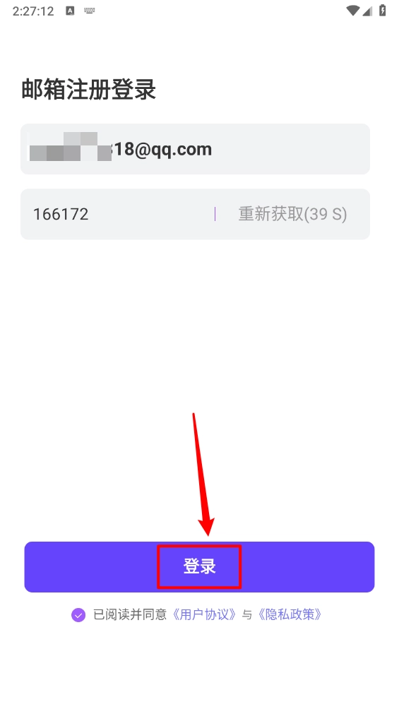 2、输入个人邮箱号进行接收验证码进行注册登录。