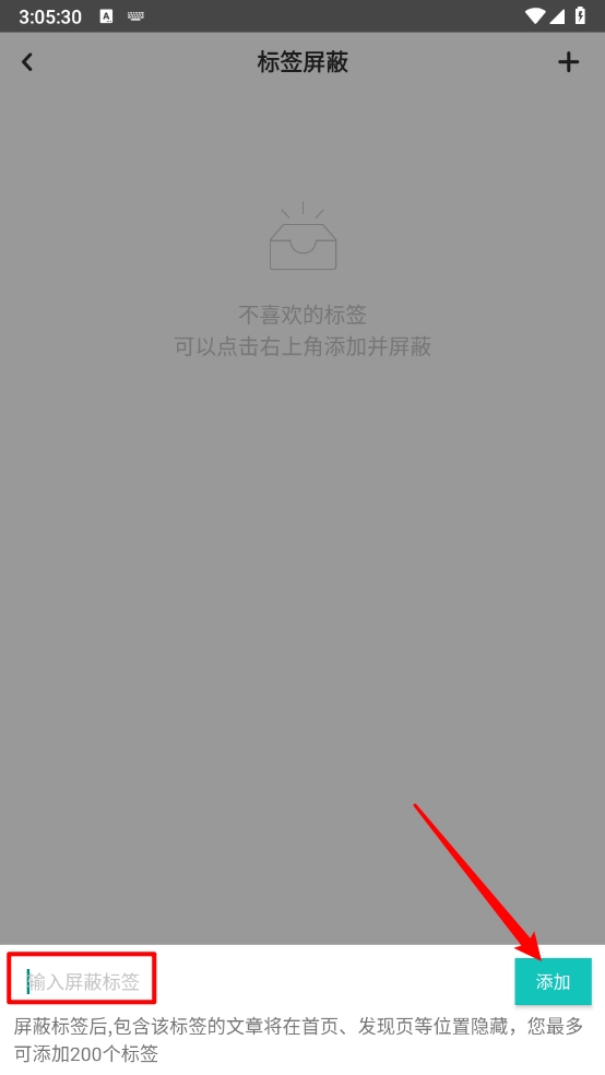 7、最后选择所需屏蔽的添加后,点击"添加"即可,屏蔽标签后,包含该标签的文章将在首页、发现页等位置隐藏,最多可添加200个标签。