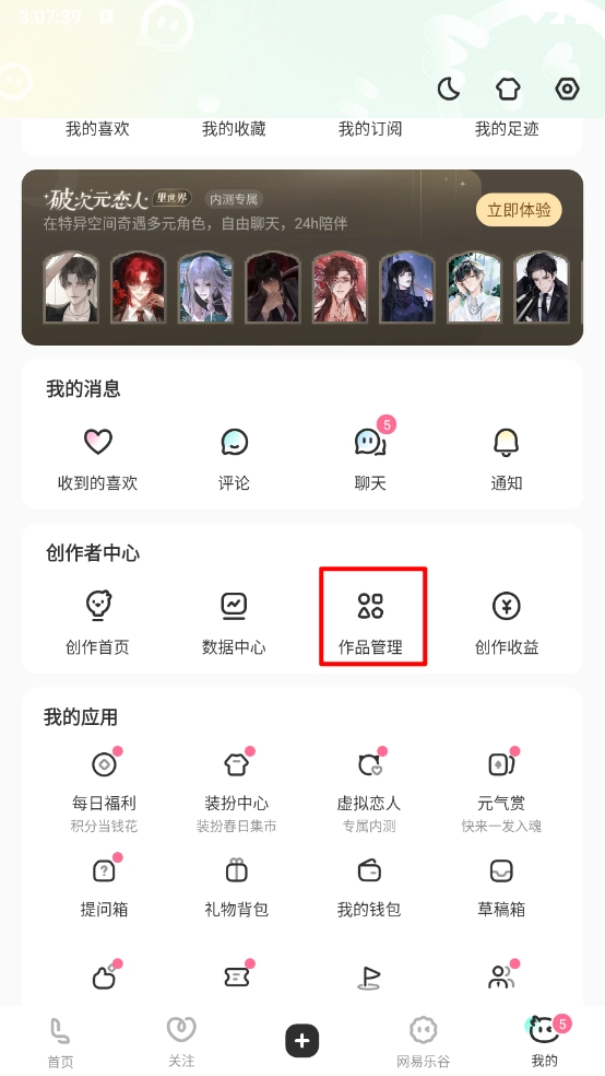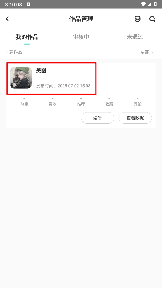 2、在作品管理页面即可查看所有的作品,长按所需删除的作品。