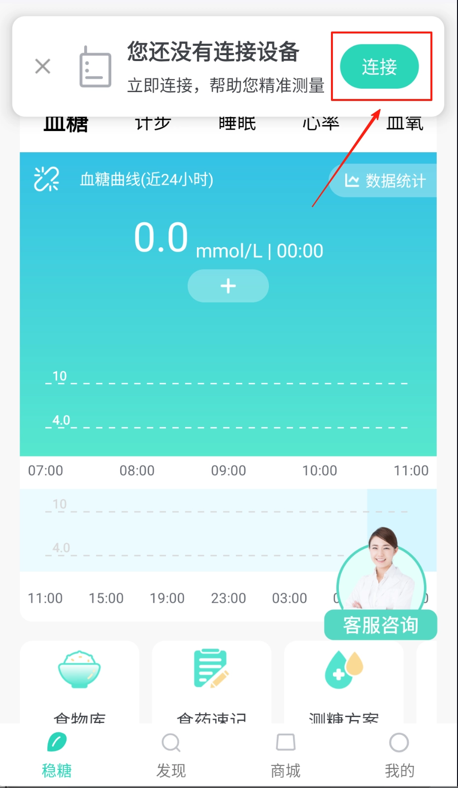 1首先找到主界面的连接按钮,接着选择匹配的设备并依照指引完成配对操作,之后就能随时查看血糖数值的动态变化了。