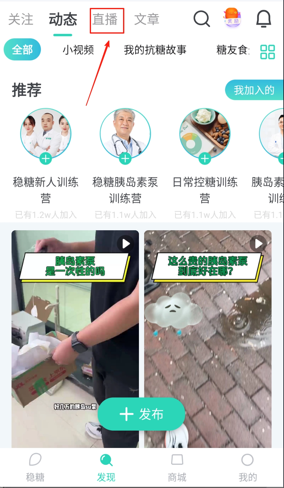 3加入稳糖社区,观看专业人士的直播内容,了解胰岛素泵的操作方法以及通过运动管理血糖的实用经验。