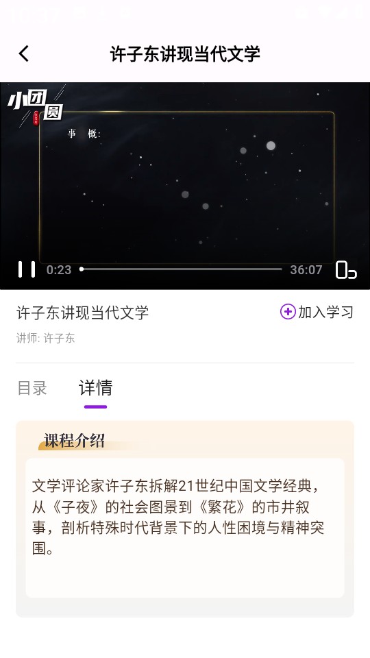 4、还能查看这门课程的详细介绍信息,就像图里展示的那样,只需一键操作就能加入学习。