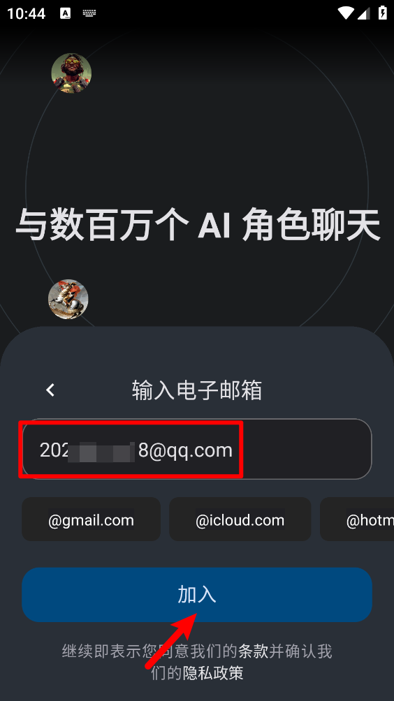 3、如图,输入对应的邮箱地址后,点击"加入"。