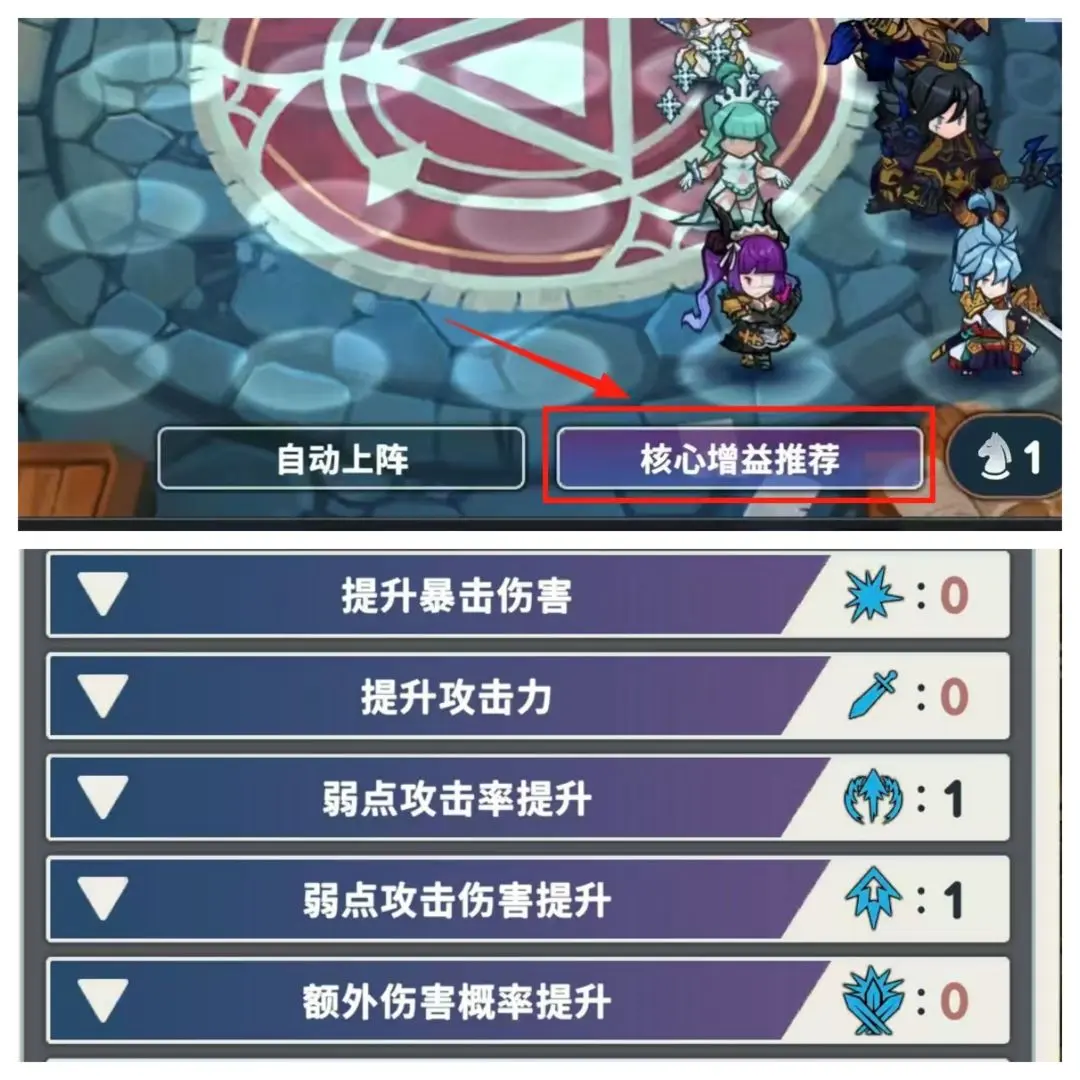 *点击【核心增益推荐】即可查看阵容内目前生效的所有增益效果哦