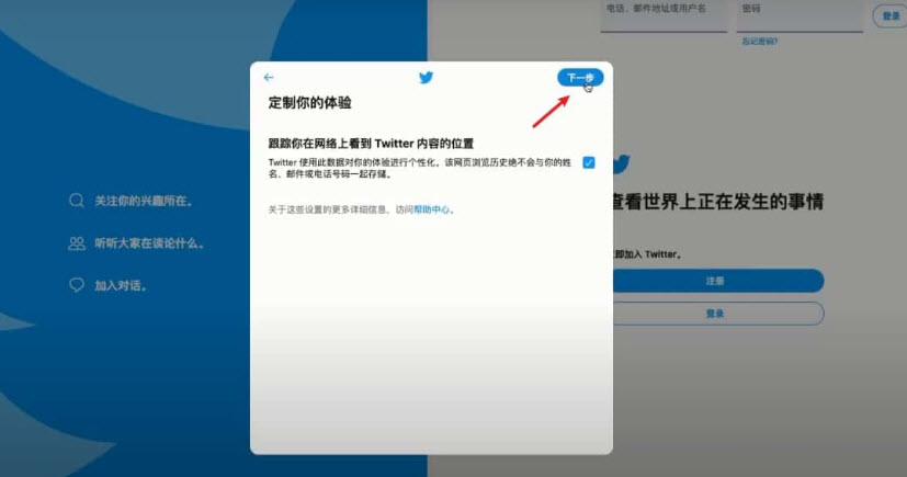 1首先访问推特官网,接着点击页面右上角的账号注册入口。