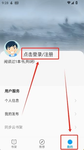 2、点击右下角“我的”,然后选择“点击注册/登录”即可快速注册或者登录账号