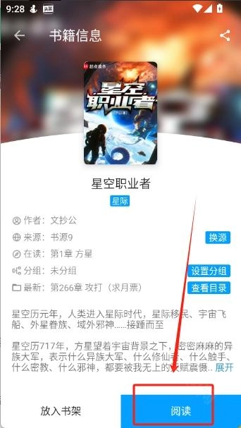4、选择一本你喜欢的小说,然后点击“阅读”即可进入阅读界面开始阅读
