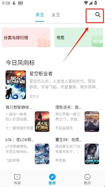 5、点击首页右上角的“搜索”图标即可搜索你想看的小说名字、
