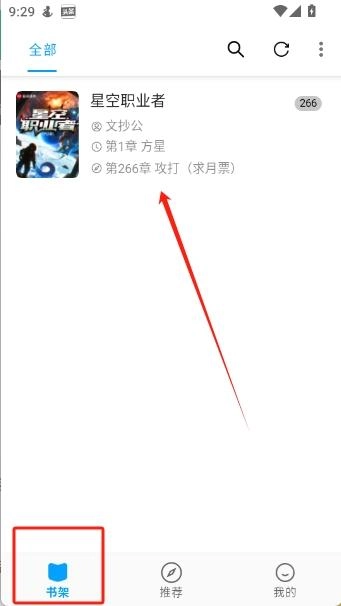 6、用户所有浏览过的小说都可以在“书架”上找到,点进去就能从上次的章节继续阅读