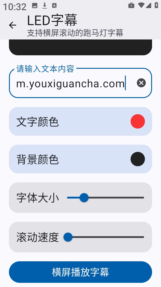 3、接着对文字颜色、背景颜色、字体大小和滚动速度等参数进行自定义设置。