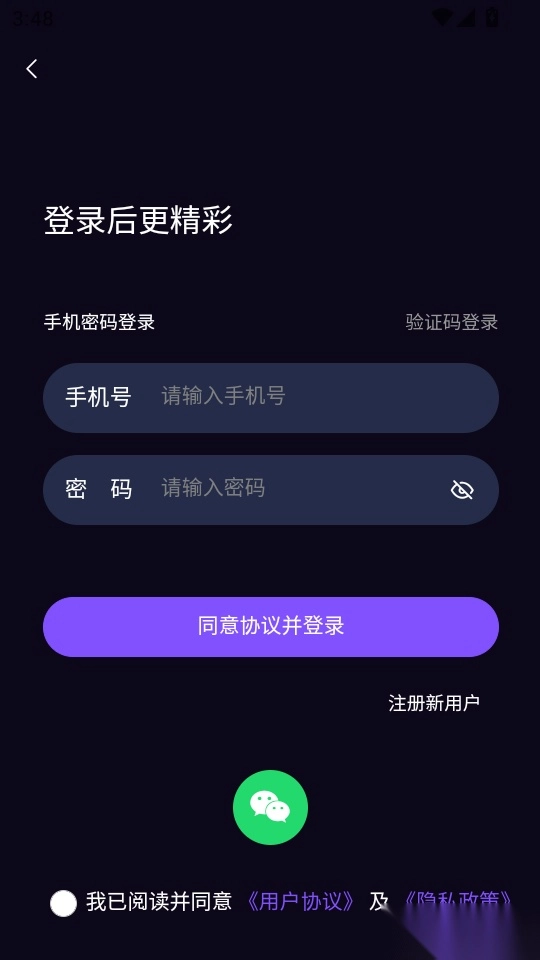 2在程序的登录页面填写好手机号和密码,随后点击“同意协议并登录”的按钮,即可进入程序主界面。
