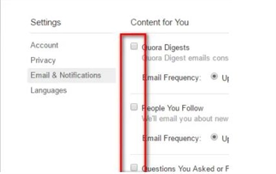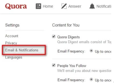 4、然后弹出的Settings目录下,找到并选中Email&Notification。