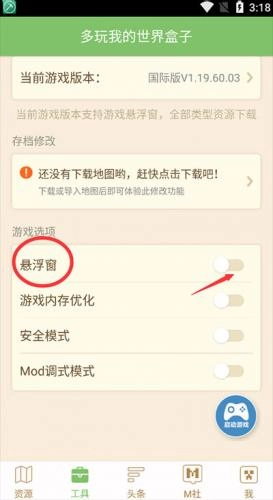 3、然后玩家就可以在我的世界游戏中使用悬浮窗进行操作了。