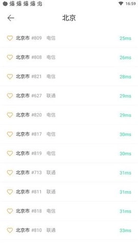3、接下来选择一个ip,进入后就可以看到每个城市具体的线路信号状况和编号,选择一个信号较好的点击即可。